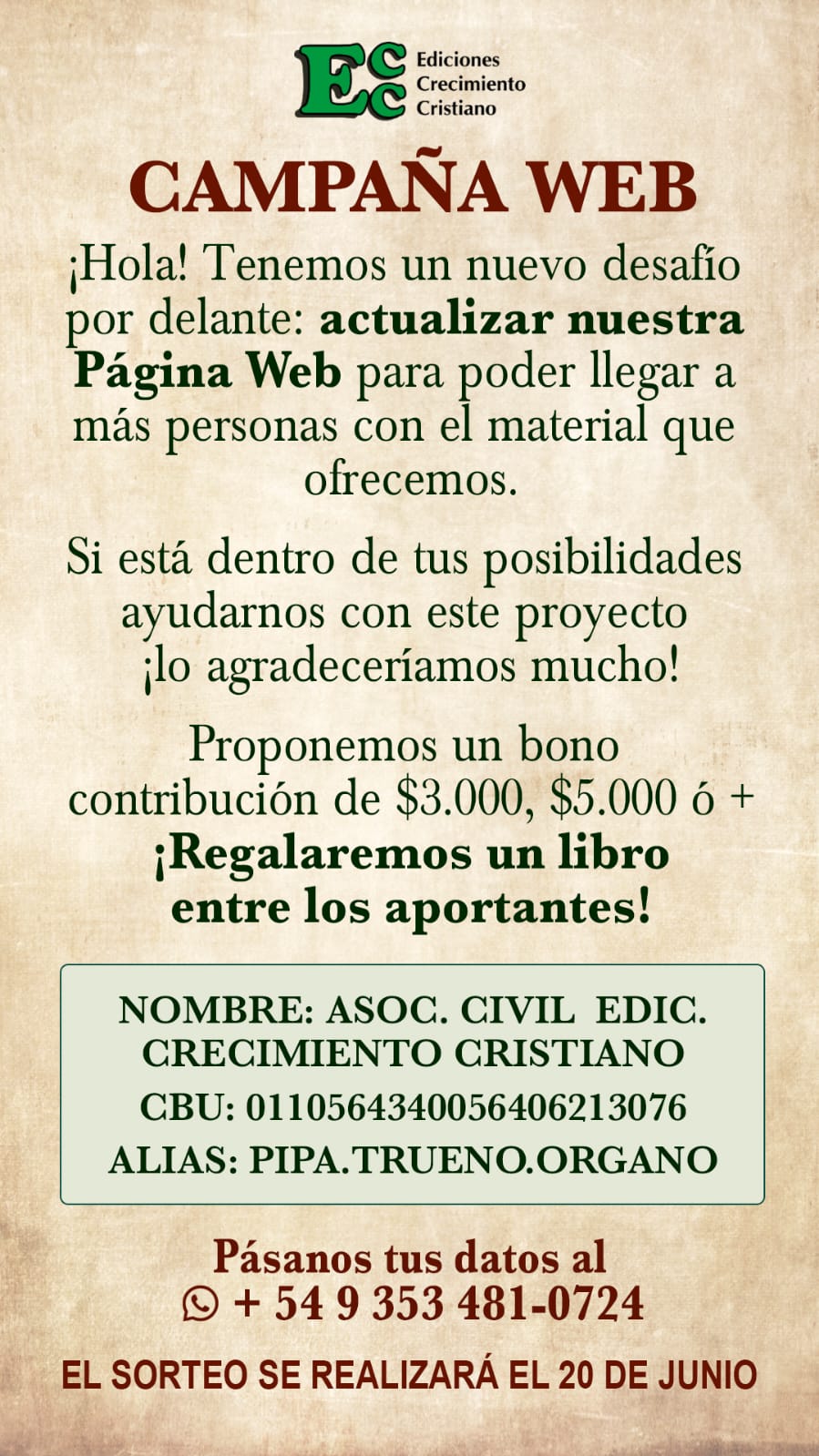 El 20 de junio, día en que finalizaba la campaña, efectuamos un sorteo entre los que habían participado con esta iniciativa. El ganador fue “tío Dany” de la ciudad de Bell Ville. Su premio fue una de las publicaciones de ECC a su elección.